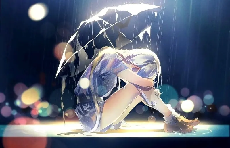 Cảm nhận nỗi buồn qua ảnh anime khóc dưới mưa