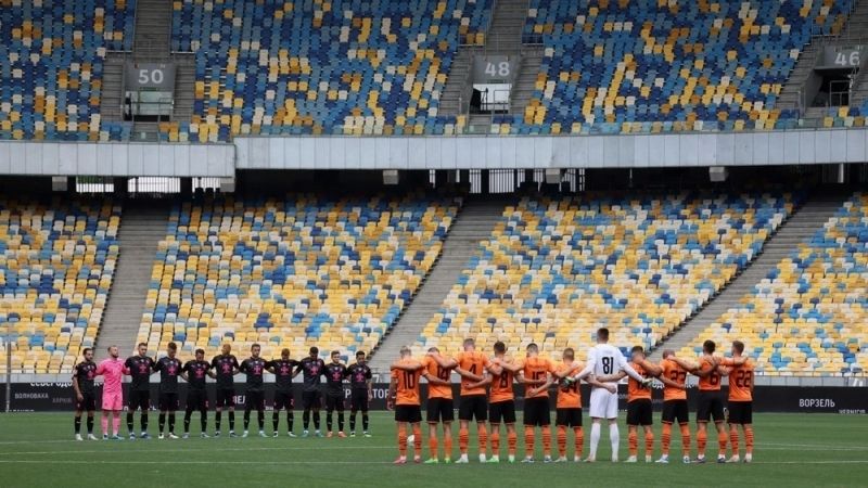 Hình ảnh toàn đội Ukraine tập hợp trên sân