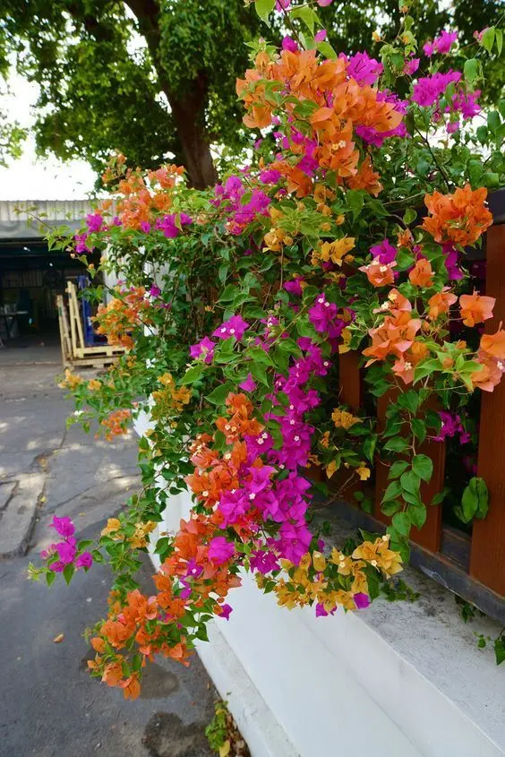 Hoa giấy ngũ sắc nở rộ bên hàng rào