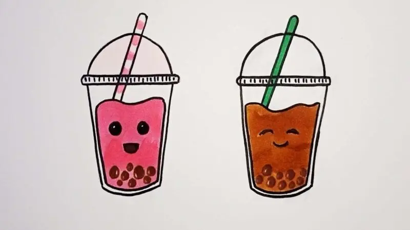 Hình nền cute đồ ăn với ly trà sữa đáng yêu