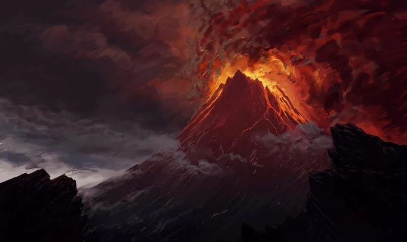 Hình nền núi lửa phun trào, biểu tượng của sự đột phá.