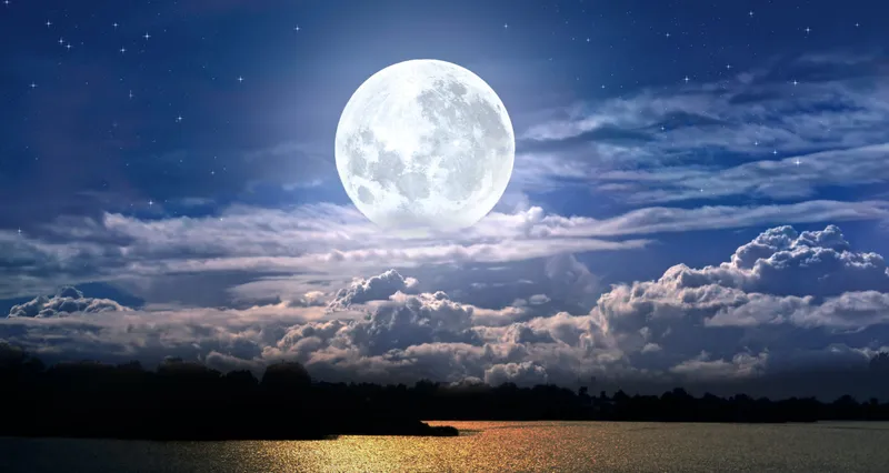 Ánh trăng tròn chiếu sáng biển đêm yên bình