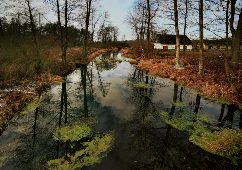 Khung cảnh đầm lầy ngập nước yên bình, nơi thời gian như ngừng trôi.