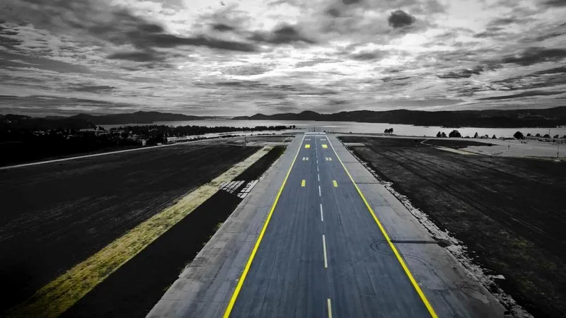 Phong cảnh đường băng sân bay kết hợp giữa sự mạnh mẽ và hiện đại.