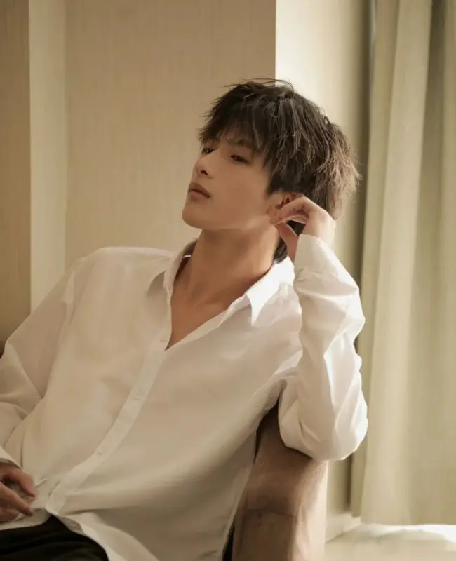 Trai đẹp mặc áo sơ mi trắng và mái tóc lãng tử