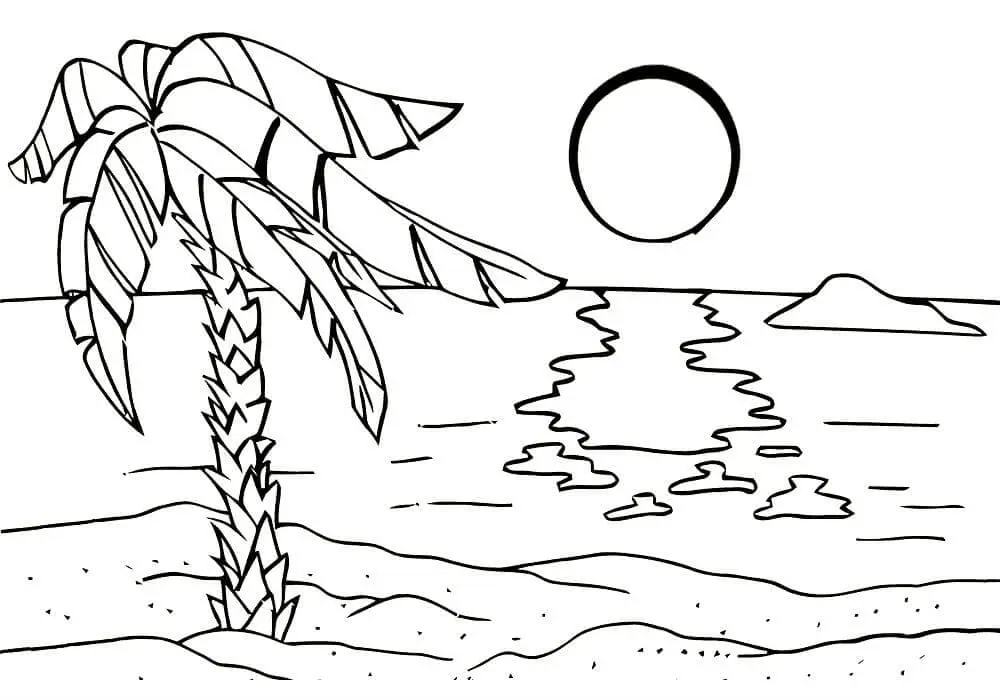 Tranh tô màu bãi biển mùa hè dành cho trẻ yêu thích thiên nhiên