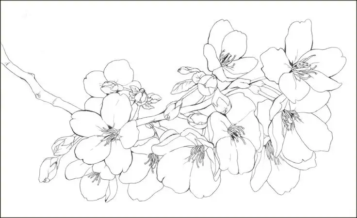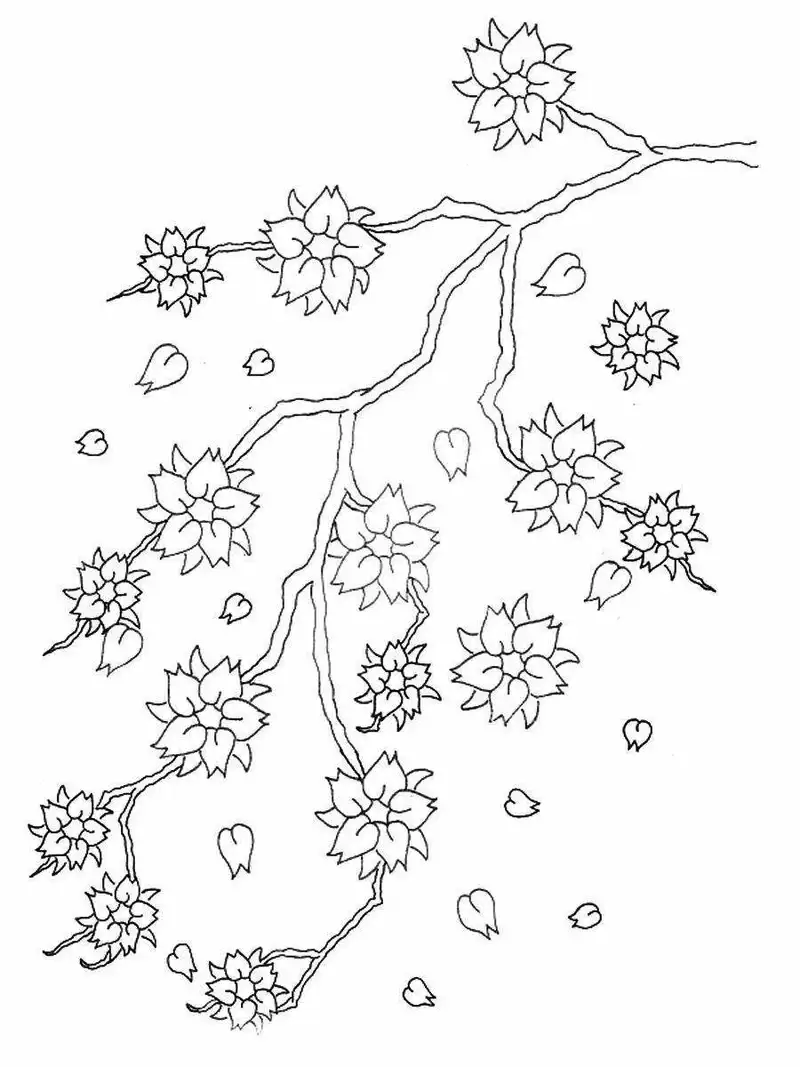 Tranh tô màu hoa anh đào với nét vẽ đơn giản